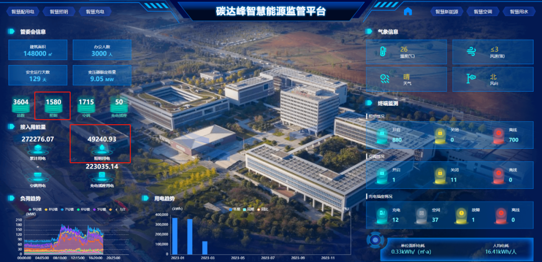 ▲国网智慧能源管理后台(照明能耗数据)