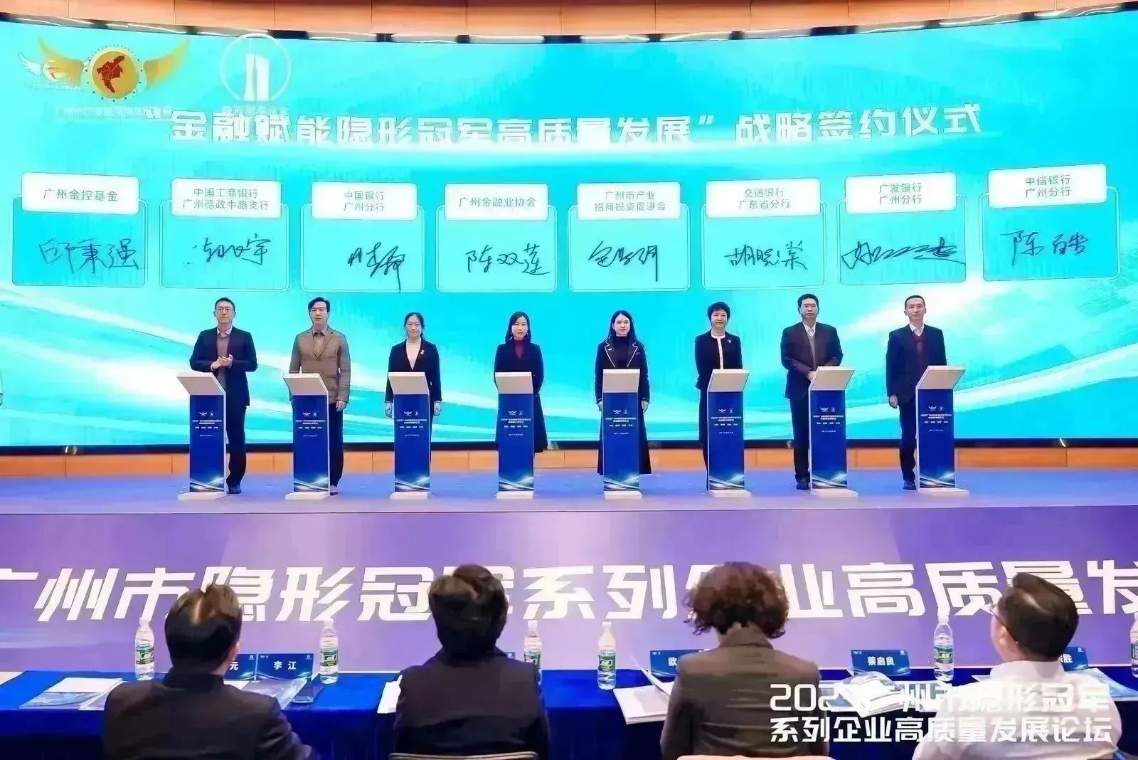 广州市产业招商投资促进会、广州金融业协会、交通银行广东省分行公司、中国银行广州分行、中国工商银行广州德政中路支行、广发银行股份有限公司广州分行、中信银行股份有限公司广州分行、广州金控基金管理有限公司共同签署“金融赋能隐形冠军高质量发展”战略合作协议。各方本着立足长远、互惠互利、合作共赢、共同发展的原则,就隐形冠军项目的合作建立全面战略合作伙伴关系。我会将积极发挥统筹协调作用,围绕隐形冠军项目,重点在招商引资、产业导入、合作投资等领域开展战略合作。
