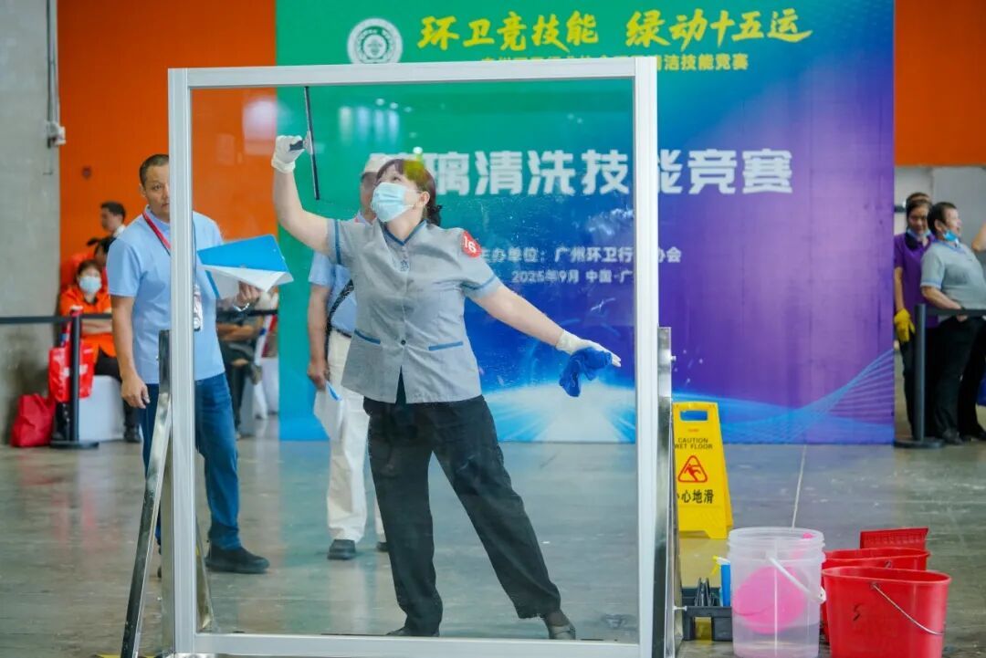 恰逢广州环卫行业协会成立 25 周年,以“贯彻习近平生态文明思想、落实‘城市管理要像绣花一样精细’指示精神” 为核心,聚焦环卫基础作业的专业化、精细化提升,展会举办了“广州环卫行业协会环卫清洁技能竞赛”——“玻璃清洗技能”与“全自动洗地机作业技能”两大板块竞赛。