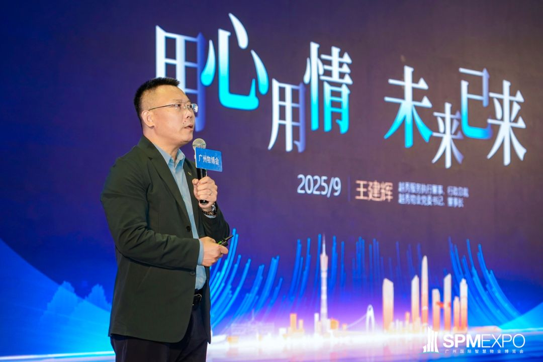 越秀服务执行董事兼行政总裁、越秀物业党委书记、董事长王建辉在会议上以《用心用情,未来已来》为主题作专题演讲。