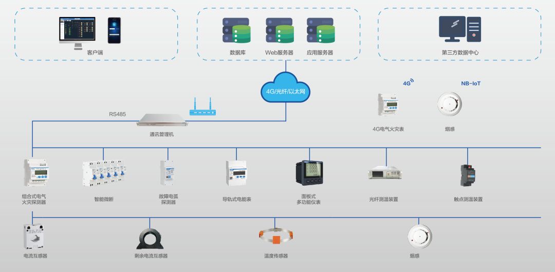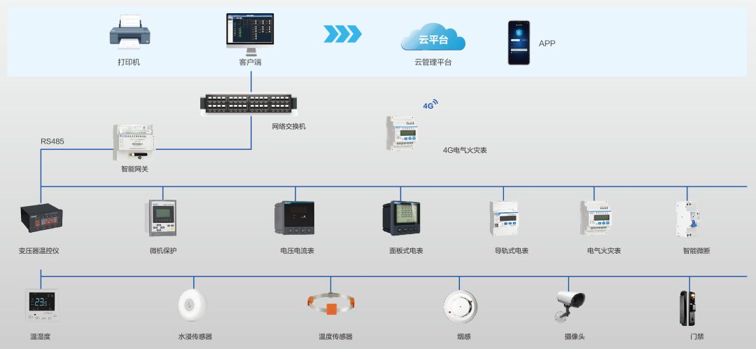 配电监控解决方案:通过智能网关、电气火灾表、温湿度传感器等设备,实时监测配电线路电流、电压、温升等参数,数据同步至云平台。物业管理人员可通过APP远程查看设备状态,回溯事件过程,无需24小时现场值守,为配电系统安全运行与能耗分析提供决策支持。