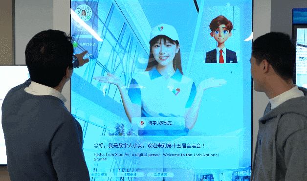 来自趣丸科技的全国首个“数字人志愿者”系统,在现场大屏幕或手机端,数字人可以观众实时互动,提供赛事导览、咨询答疑、城市旅游推荐等服务。