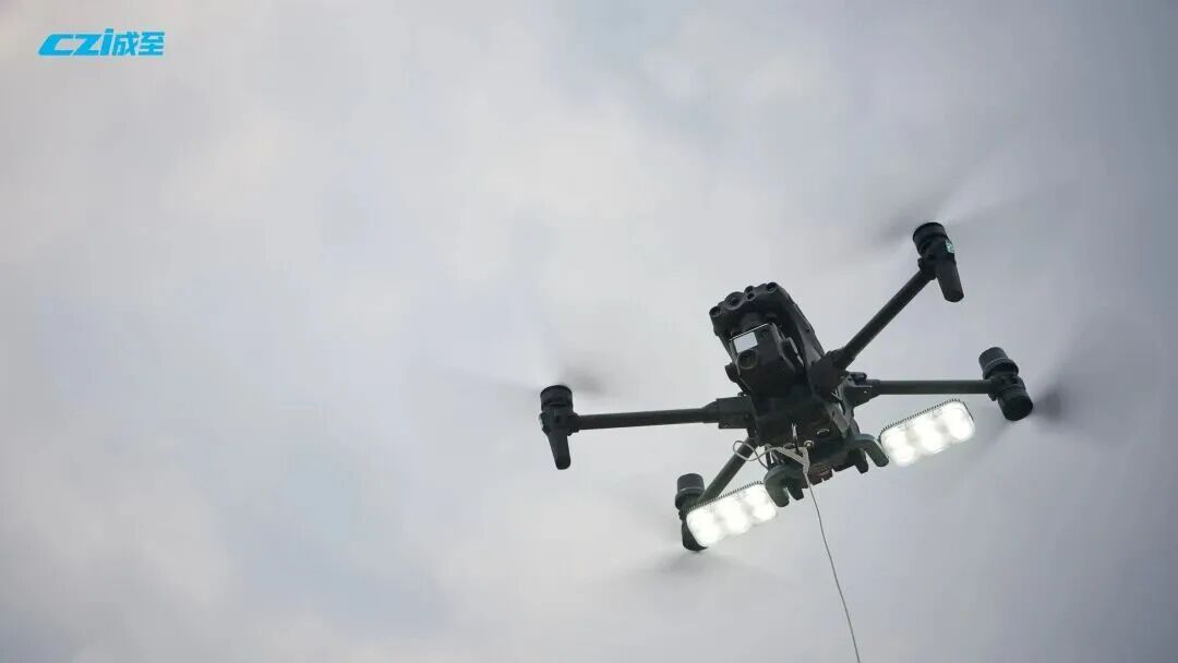 成至智能公司利用无人机提供系留应急照明,并具备预警、探测与识别等多种功能,为赛事安全提供了有力保障。