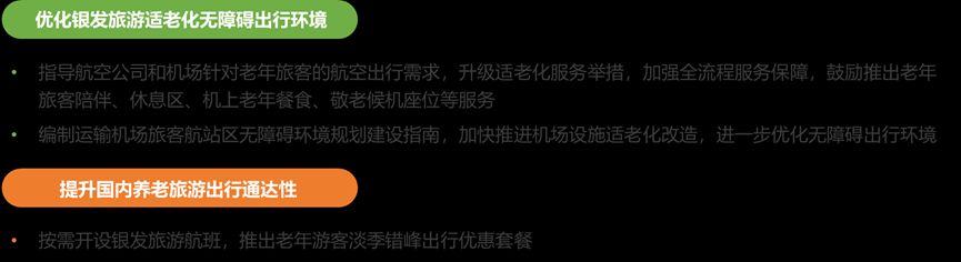 12月3日,文化和旅游部、中国民航局联合发布《文化和旅游与民航业融合发展行动方案》,银发旅游是重点之一,要求航空公司和机场升级适老化服务,如陪伴、休息区、老年餐食等,并加快机场无障碍改造。同时,按需开设银发旅游航班,推出淡季错峰出行优惠套餐,提升通达性。