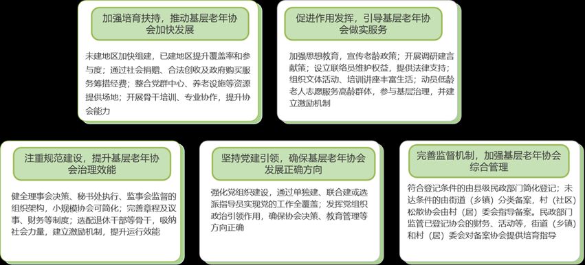 【政策解读】政策旨在通过党建引领、规范管理和多部门协同,推动基层老年协会从“有”到“优”转型,使其成为党委政府的“参谋助手”,强化基层治理效能;提升服务老年人能力,及时回应合理诉求;引导老年人参与社区治理、践行社会主义核心价值观,增强其获得感与社会融合度,从而激活“银发力量”,营造尊老敬老氛围,共同应对人口老龄化挑战。