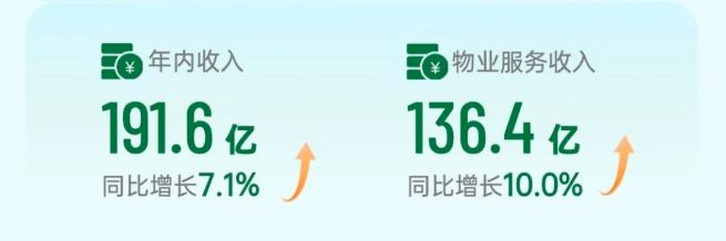 2025年,绿城服务实现收入为191.6亿元,较2024年全年178.94亿元同比增长7.1%。其中,物业服务收入为136.4亿元,占整体收入的71.2%,同比增长10.0%;园区服务收入为27.56亿元,占整体收入的14.4%,同比增长0.6%;咨询服务收入为27.64亿元,占整体收入的14.4%,同比增长0.4%。